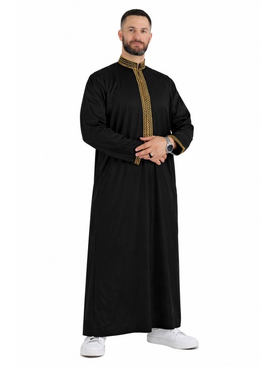 Qamis Sultan Schwarz / Gold - mit Stickerei - Baumwolle